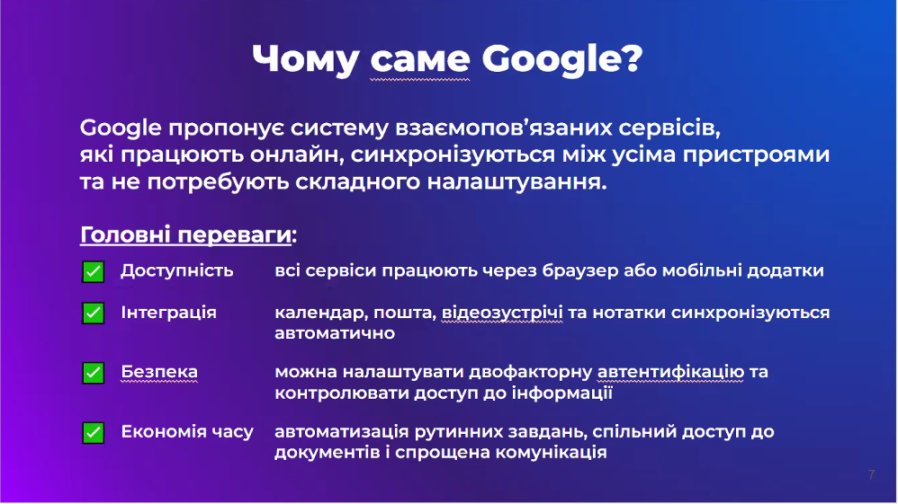 Реалізовано загальну короткострокову програму підвищення кваліфікації "Використання сервісів "Google" у роботі державних службовців та посадових осіб місцевого самоврядування"