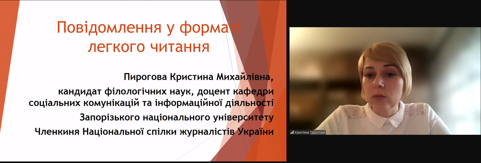 У дистанційному режимі працювала Пирогова Кристина Михайлівна – доцент кафедри соціальних комунікацій, реклами та зв'язків із громадськістю Запорізького національного університету.