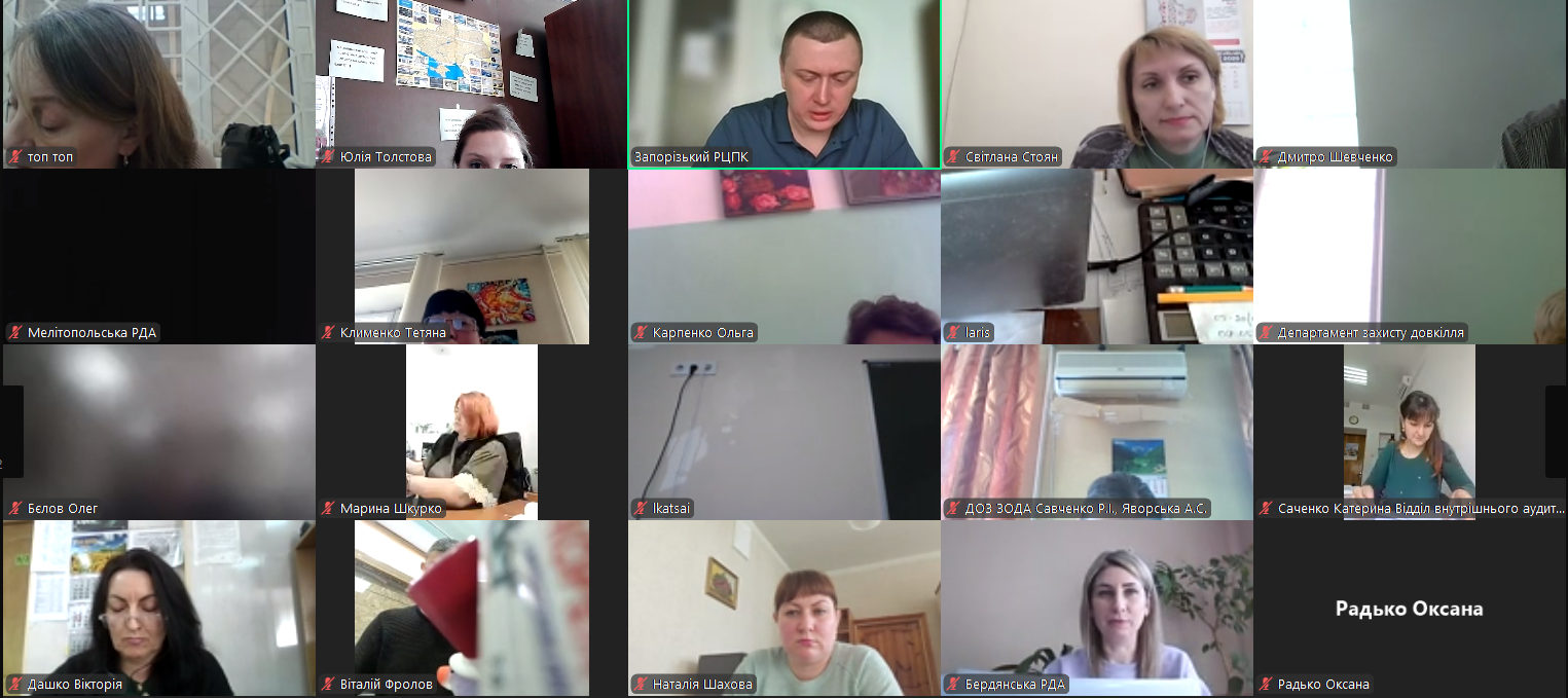 09-10 липня 2020 року в Запорізькому Центрі було реалізовано онлайн-навчання для двох навчальних груп за короткостроковою програмою підвищення кваліфікації "Ефективні комунікації та взаємодія в команді" для державних службовців – працівників районних державних адміністрацій.