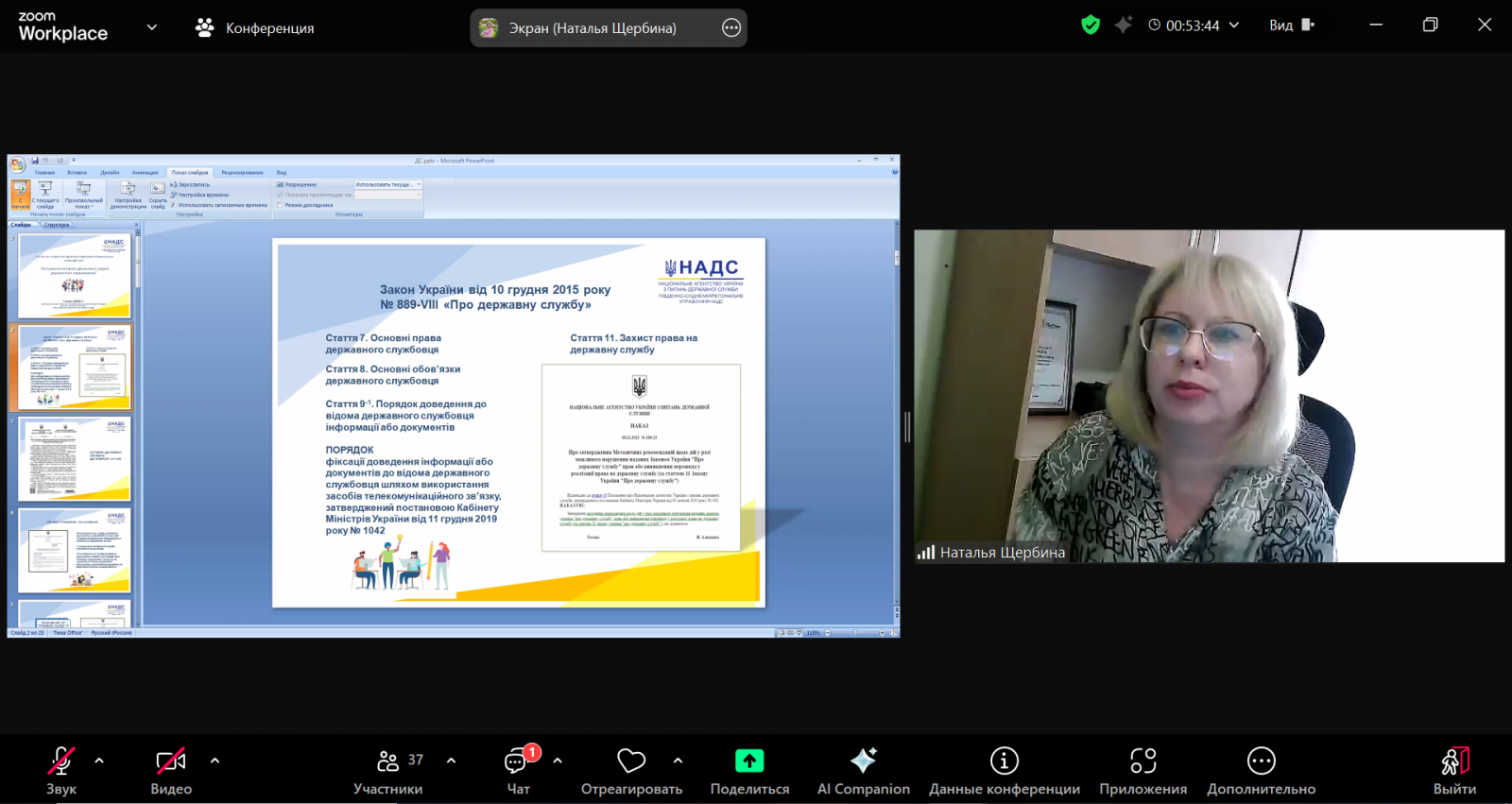 Реалізовано останні навчальні заняття за загальними професійними (сертифікатними) програмами підвищення кваліфікації державних службовців, вперше призначених на посаду державної служби категорії "Б" / "В" та посадових осіб місцевого самоврядування, вперше призначених на посади в органах місцевого самоврядування