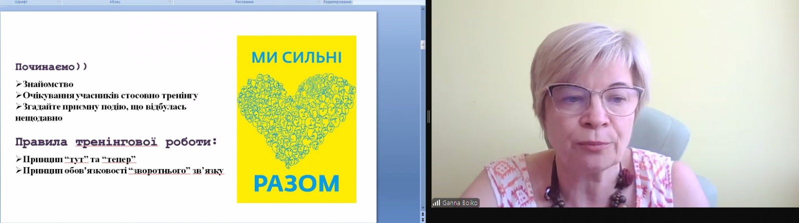 У дистанційному режимі із учасниками професійного навчання працювала Фролова Ольга Василівна – доцент кафедри психології Бердянського державного педагогічного університету, кандидат психолог...