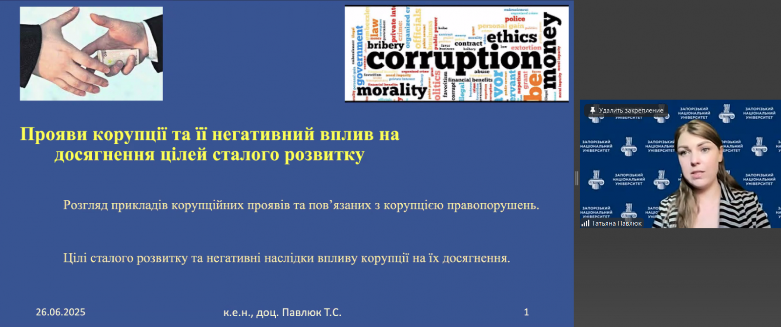 – "Прояви корупції та її негативний вплив на досягнення цілей сталого розвитку";