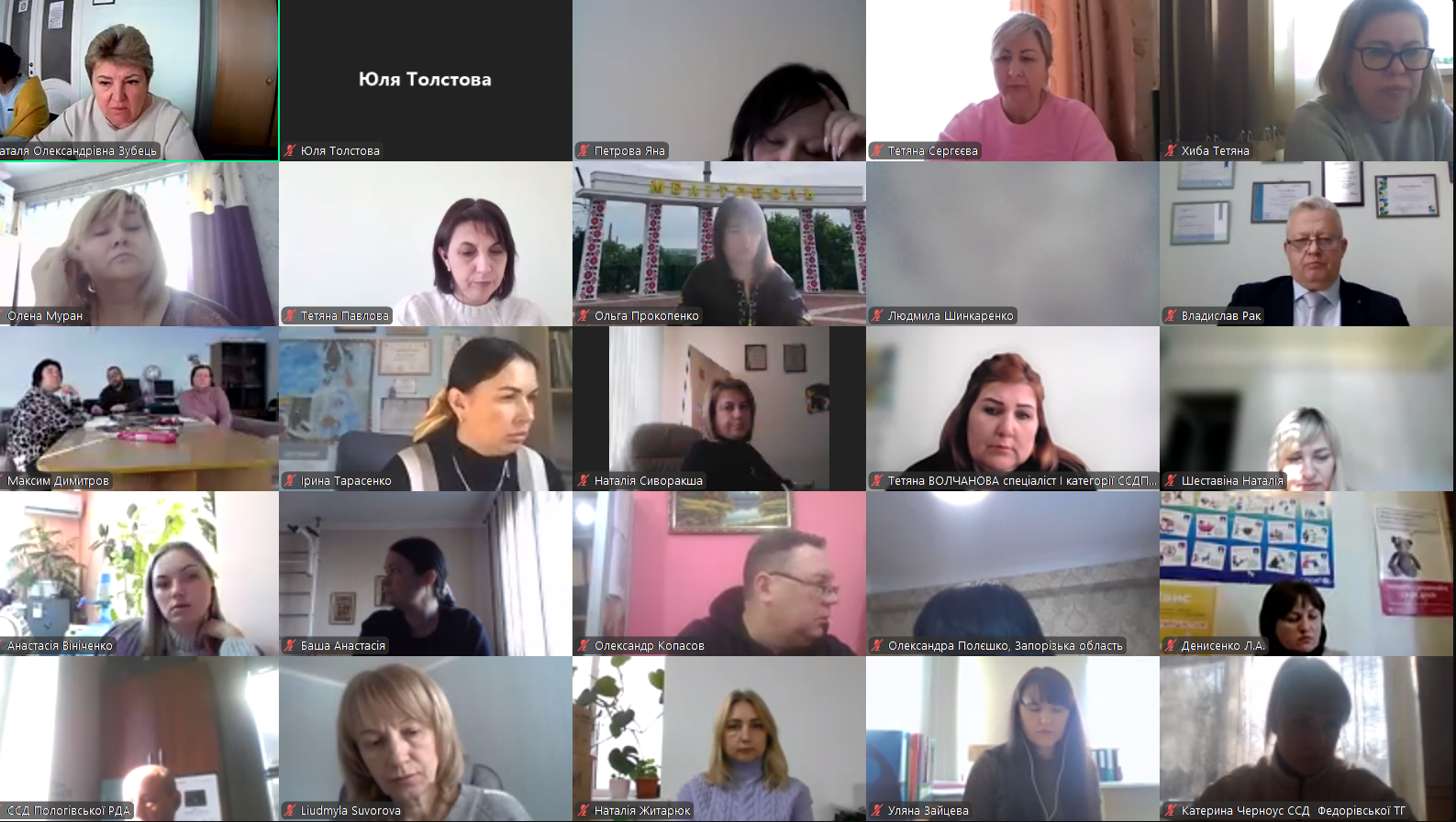Розглядались питання соціального захисту дітей та роботи з сім’ями, які опинилися у складних життєвих обставинах, з метою попередження вилучення дітей; особливостей усиновлення дитини під час воєнного стану; захисту прав дітей-сиріт та дітей, позбавлених батьківського піклування. Фахівці Служби у справах дітей Запорізької облдержадміністрації зупинились на окремих аспектах реалізації Стратегії розвитку сімейних форм виховання в територіальних громадах.