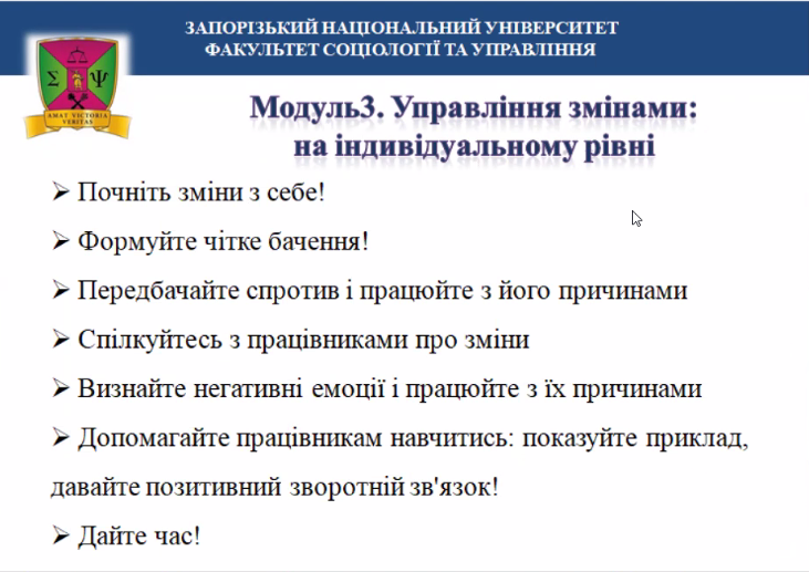 Саме на це і була спрямовано навчальний матеріал загальної короткострокової програми підвищення кваліфікації «Впровадження змін та інновацій», реалізація якої відбулася 23 та 24 квітня 2025 року. У даному навчанні взяли участь 88 державних службовців та посадових осіб місцевого самоврядування Запорізького регіону.