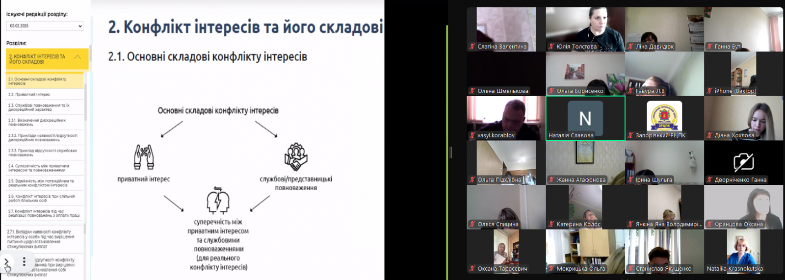 26 травня 2025 року Центром реалізовано загальну короткострокову програму підвищення кваліфікації "Конфлікт інтересів на державній службі та службі в органах місцевого самоврядування: шляхи запобігання та врегулювання", загальною метою якої є оновлення, систематизація наявних знань та вмінь, формування практичних навичок щодо запобігання і врегулювання конфлікту інтересів та дотримання інших антикорупційних обмежень..png)