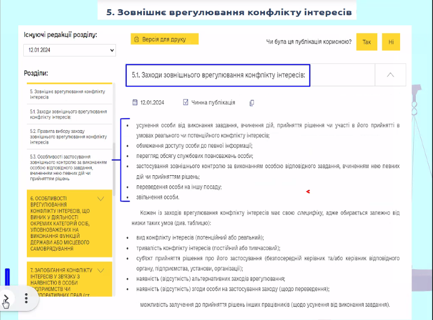"Загальні поняття конфлікту інтересів: потенційний та реальний конфлікт інтересів".
