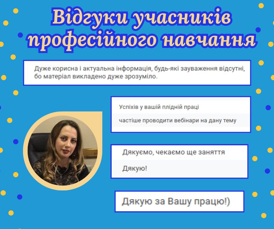 Завдячуємо пані Наталії за високопрофесійне та практикоорієнтоване проведення навчання.
