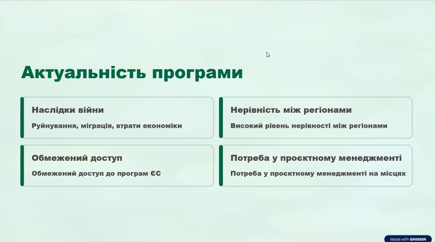 – "Підготовка та управління бюджетами міжнародних проєктів";