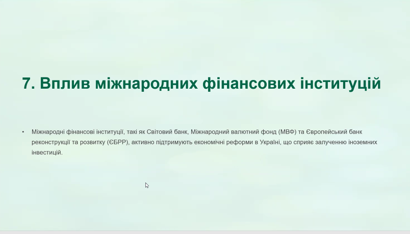 Під час навчання учасники розглядали приклади інвестиційних проєктів, реалізованих у різних країнах світу за підтримки міжнародних фінансових організацій. До уваги були взяті кейси з Європи та Африки, що дозволило побачити різноманітність підходів до планування, оцінки та впровадження проєктів. Цей міжнародний огляд дав учасникам розуміння того, як глобальні стандарти МФО можуть успішно поєднуватися з національними особливостями, забезпечуючи ефективність та сталість результатів.