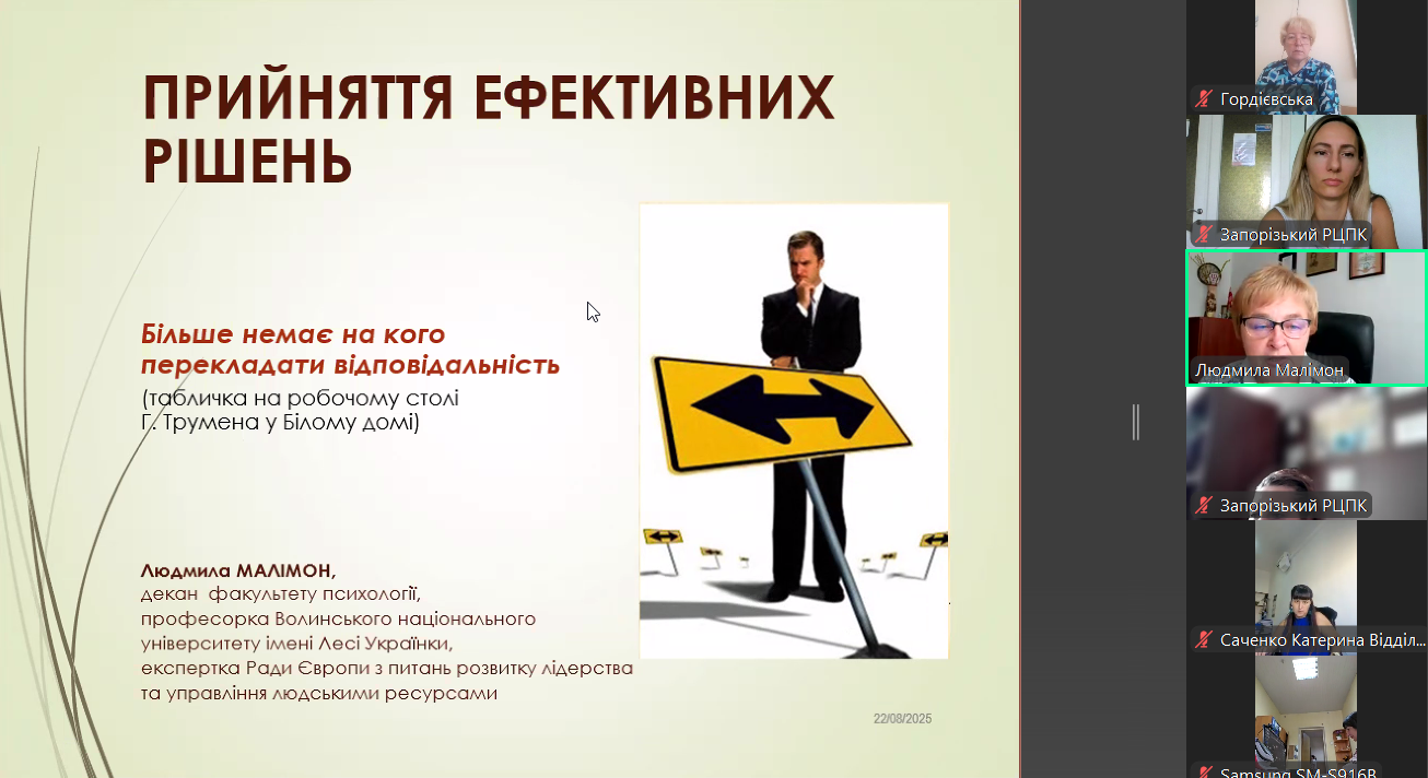 19, 20, 21 та 22 серпня 2025 року Запорізьким РЦПК проведено перші заняття за загальними професійними(сертифікатними) програмами підвищення кваліфікації державних службовців, які займають посади державної служби категорії "Б" / "В" (не рідше одного разу на три роки), в якому беруть участь державні службовціЗапорізької обласної військової адміністрації та районних військових адміністрацій.
