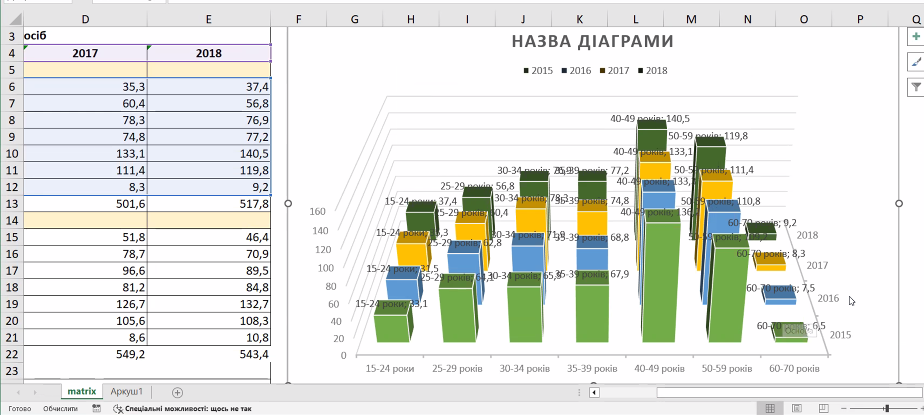 Під час навчання учасникам були презентовані матеріали, які демонстрували покрокові інструкції щодо роботи в програмі Microsoft Excel та містили наочні приклади виконання основних операцій: створення таблиць, використання формул, застосування фільтрів, сортування даних та роботу з діаграмами. Такий підхід сприяв кращому розумінню матеріалу та підвищив ефективність навчання.