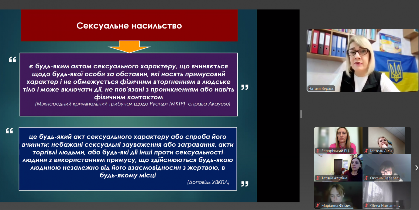 Впродовж останнього навчального тижня публічні службовці підвищили власні професійні компетентності з правових засад запобігання, виявлення та реагування на випадки сексуального насильства, пов’язаного з конфліктом (СНПК), дізналися про види та форми надання допомоги особам, постраждалим від СНПК; ознайомилися з поняттям "Стрес" та "Кризові ситуації", дізналися про ключові механізми стресостійкості та копінг-поведінки тощо. Також учасники професійного навчання пройшли обов'язковий підсумковий контроль результатів навчання в режимі реального часу з використанням Google-форми.