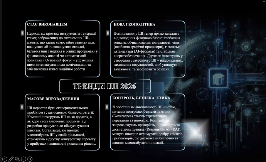 Метою програми було формування практичних навичок використання інструментів штучного інтелекту в професійній діяльності, ознайомлення з їхнім функціоналом, можливостями та обмеженнями. Особлива увага приділялася етичним аспектам використання штучного інтелекту, інформаційній безпеці та відповідальності за результати роботи з цифровими інструментами. .png)