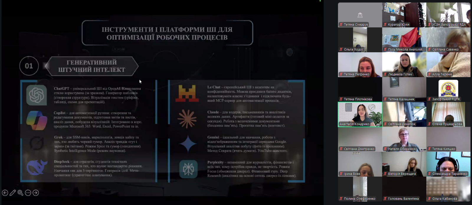 19 лютого 2026 року було проведено навчання за програмою «Застосування штучного інтелекту: функціонал та особливості».
