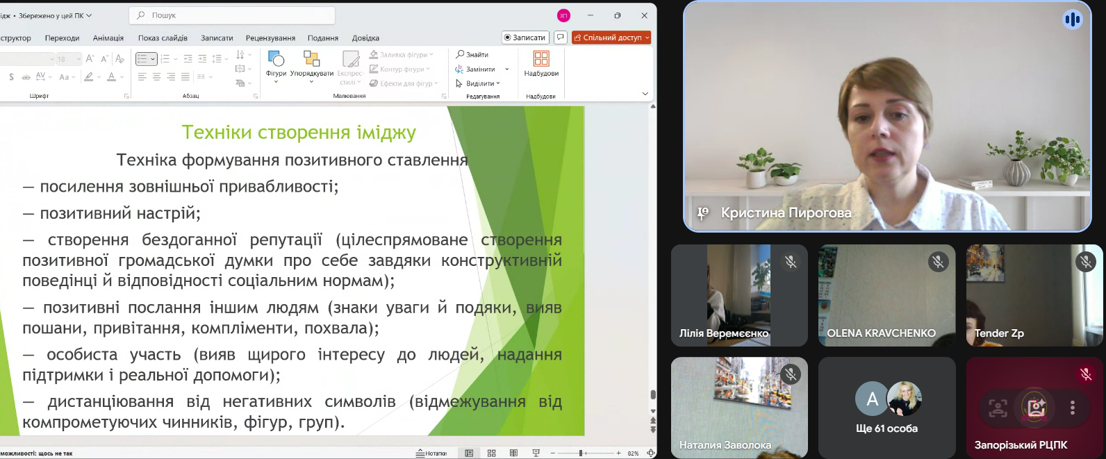 Саме тому, задля формування у державних службовців та посадових осіб місцевого самоврядування ціннісного уявлення про імідж, поглиблення знань учасників професійного навчання щодо сучасних технологій та інструментів іміджології, вироблення умінь і навичок формування позитивного іміджу та забезпечення його просування в сучасних реаліях, 16 та 19 лютого 2026 року Запорізьким РЦПК проведено навчання за загальною короткостроковою програмою підвищення кваліфікації "Формування іміджу в сучасних реаліях".
