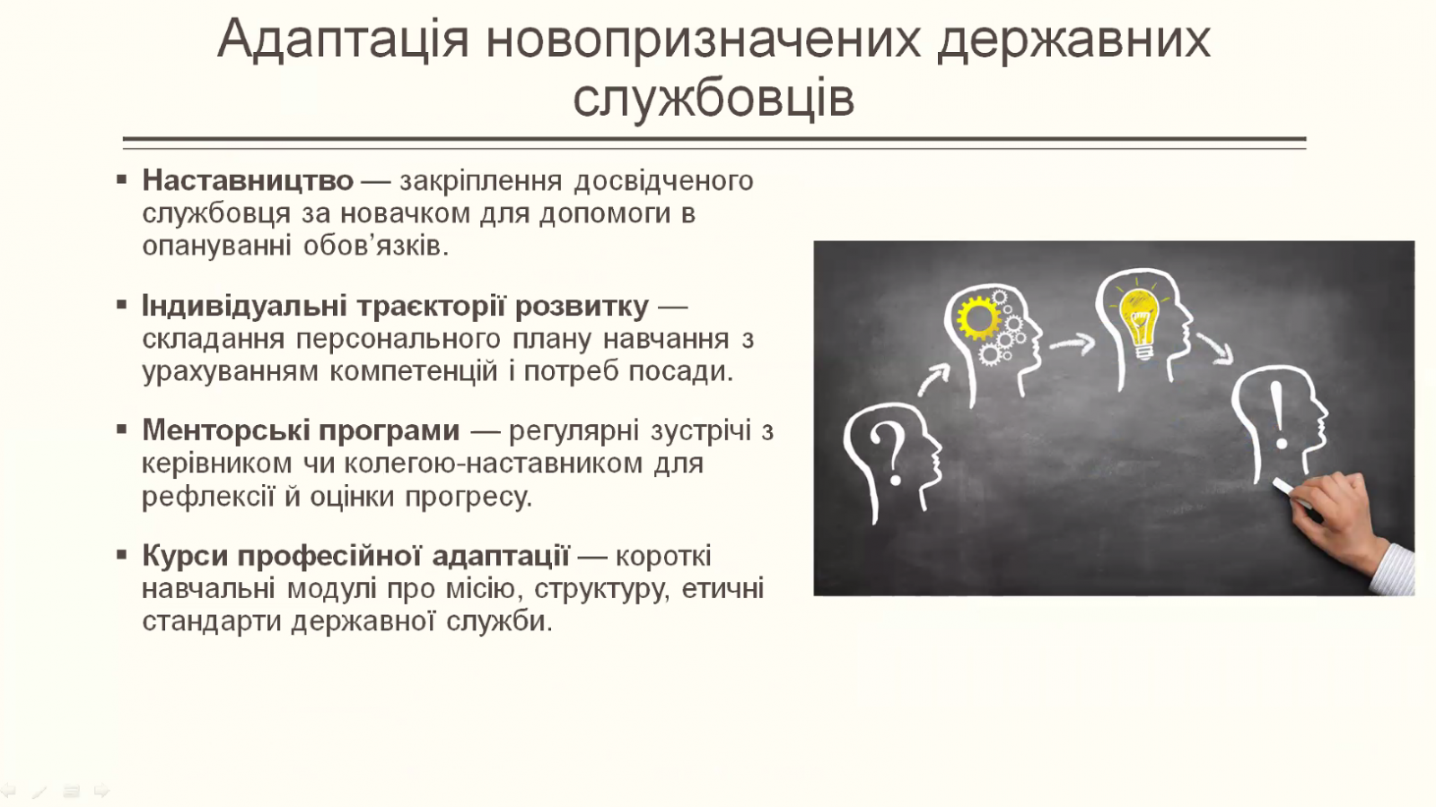 – "Управління персоналом для забезпечення інституційної спроможності державного органу. Мотивація та залученість персоналу. Формування системи управління конфліктами";