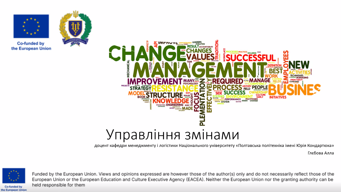 – "Сутність змін. Результативність та ефективність впровадження змін. Управління опором змінам";
