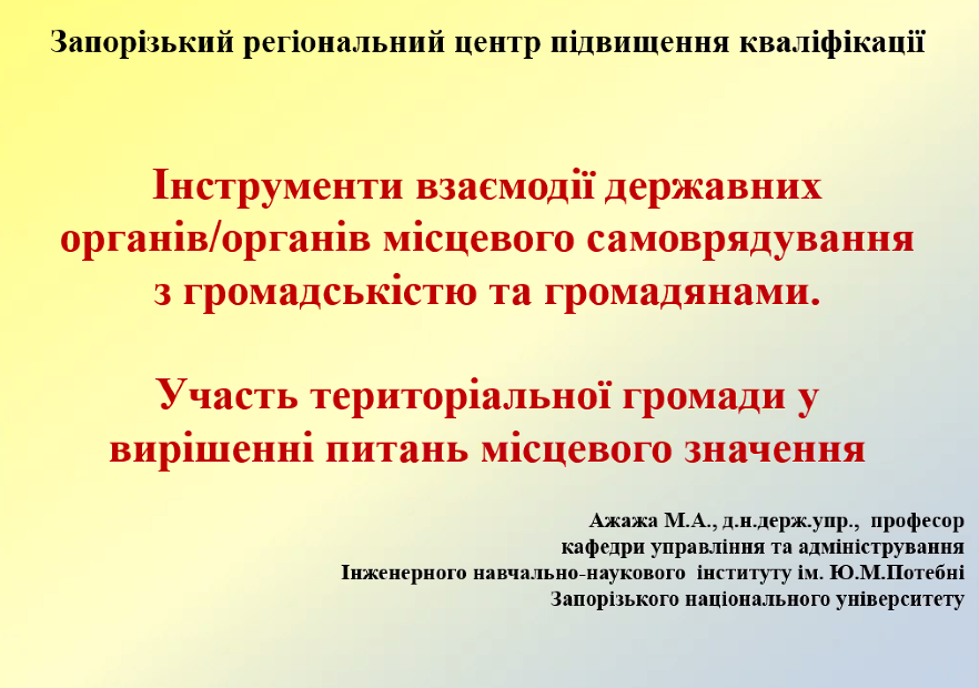 – "Інструменти взаємодії державних органів з громадськістю та громадянами";