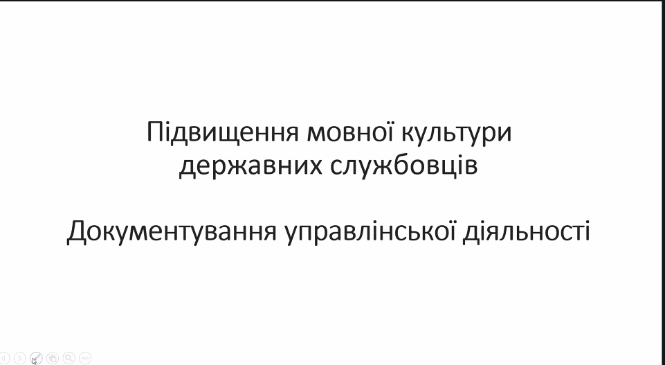 Ольшанська Олена Олексіївна – завідувач відділу соціокультурної діяльності та промоції читання комунального закладу "Запорізька обласна універсальна наукова бібліотека" Запорізької обласної ради, розкрила тему "Підвищення мовної культури державних службовців". Під час заняття було акцентовано увагу на важливості дотримання норм сучасної української літературної мови в професійній діяльності, адже мовна культура є складовою професійної компетентності та іміджу державного службовця. З учасниками навчання були розглянуті питання правильного слововживання, наголошування, уникнення русизмів і канцеляризмів, особливості офіційно-ділового стилю мовлення.