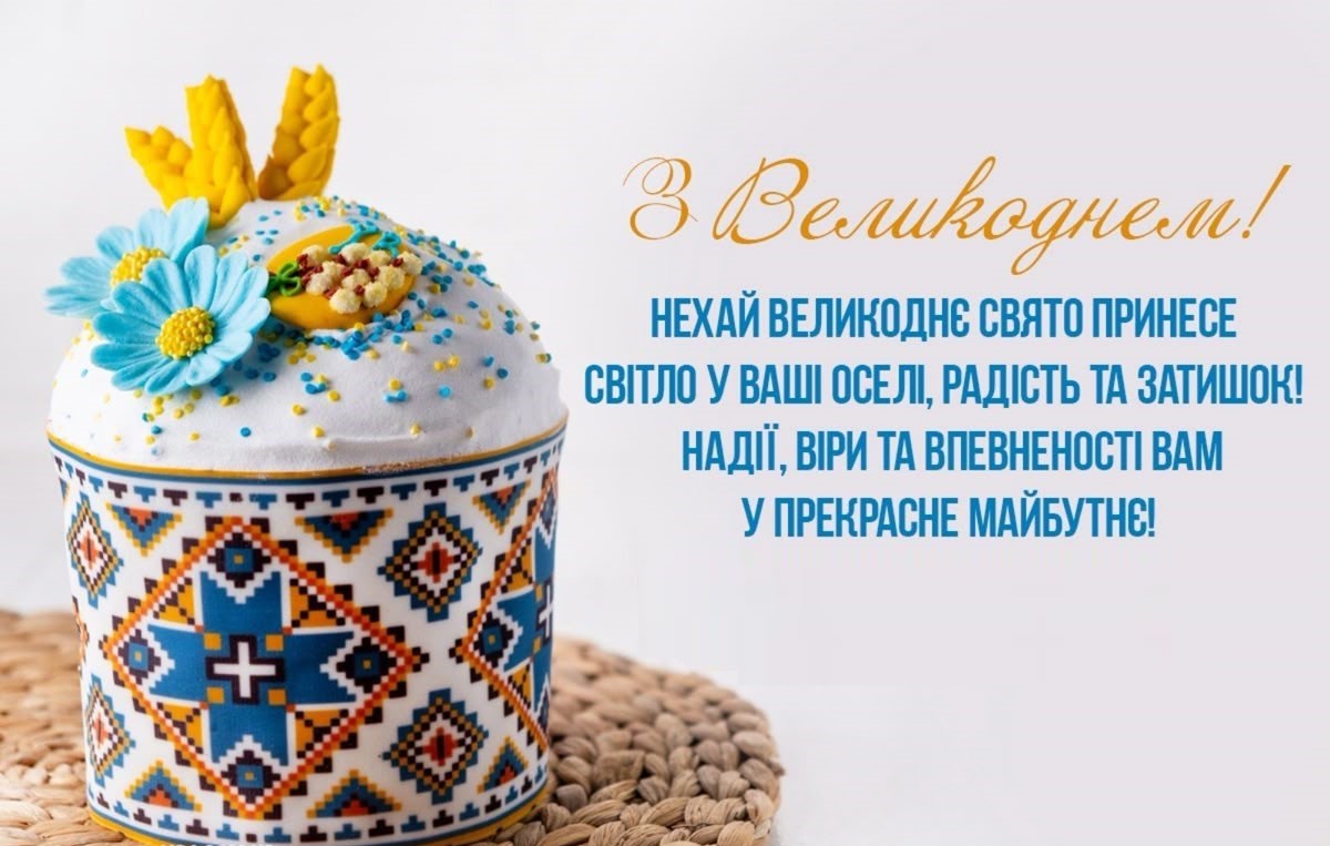 Нехай Божа благодать завжди перебуває з вами, а віра зміцнює серця і душу. Разом із великоднім світлом нехай у ваші домівки прийдуть спокій, надія і добра новина – новина про Перемогу України. Адже саме свято Великодня показує, що попри всі страждання та випробування, добро обов’язково переможе!